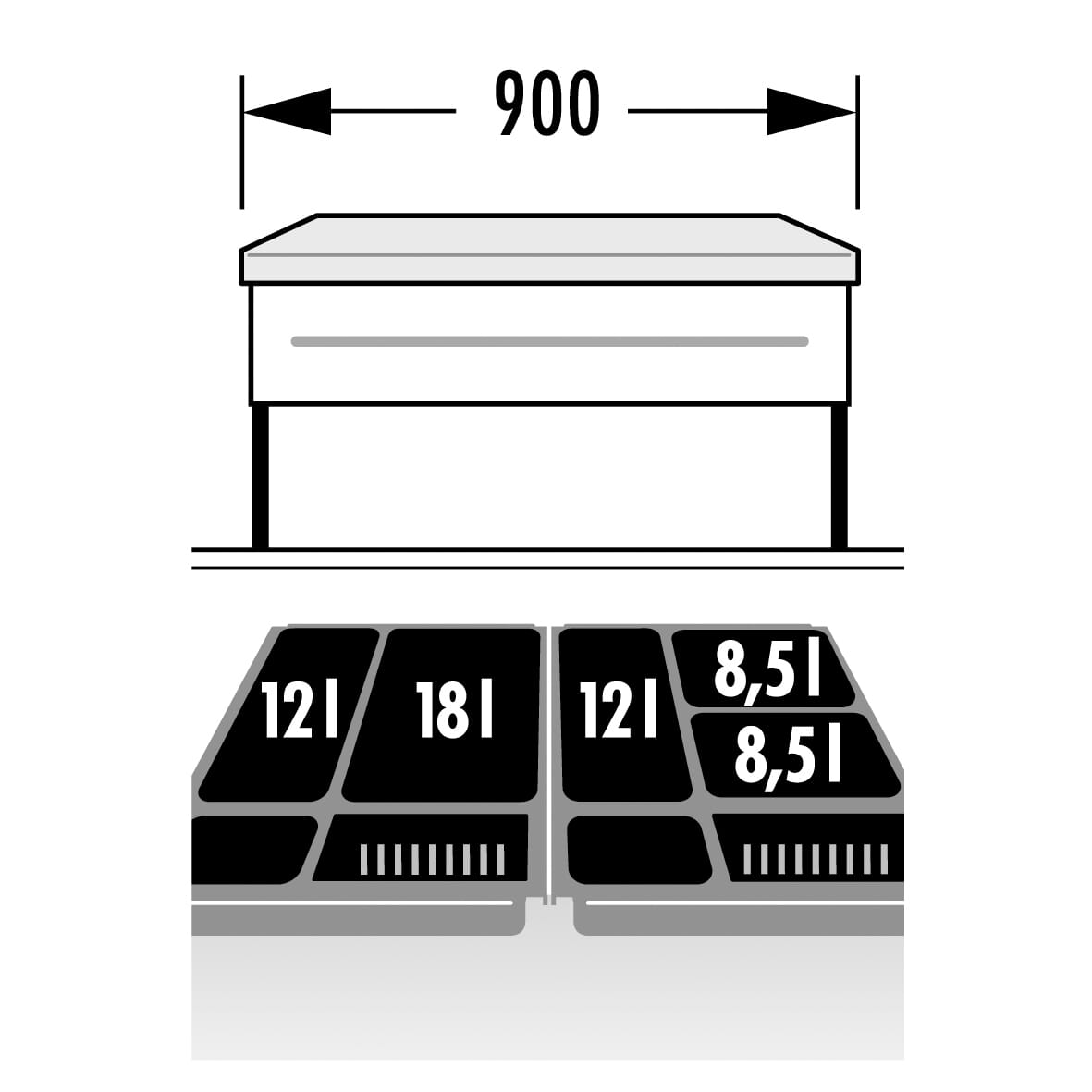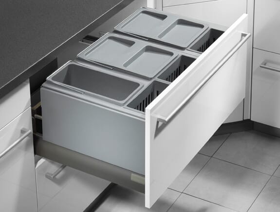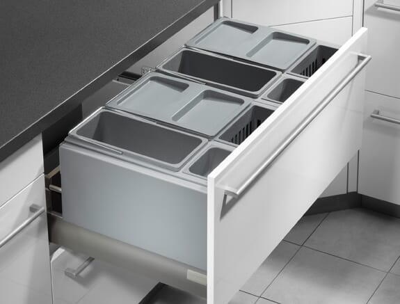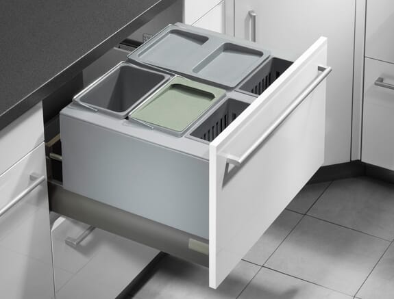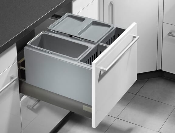 Praktisk avfallssorterer for skuff som finnes i ulike størrelser i fargen grå. Passer for å kunne skille alt av avfall.
