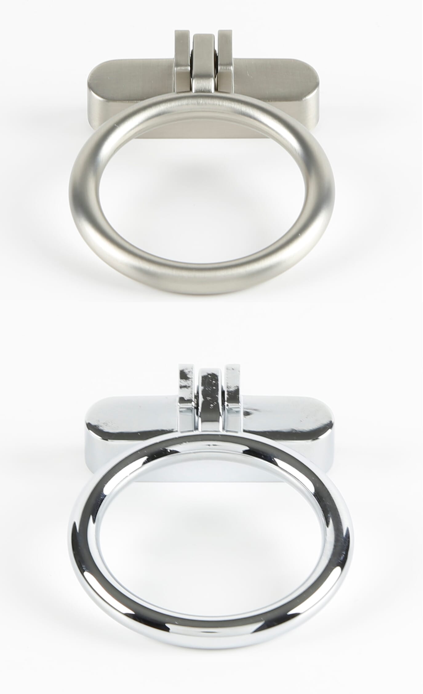 Møbelhåndtak i zamak. Møbelhåndtak ring som passer til innredninger som kjøkken, bad og garderober. Finnes i ulike farger/overflater.