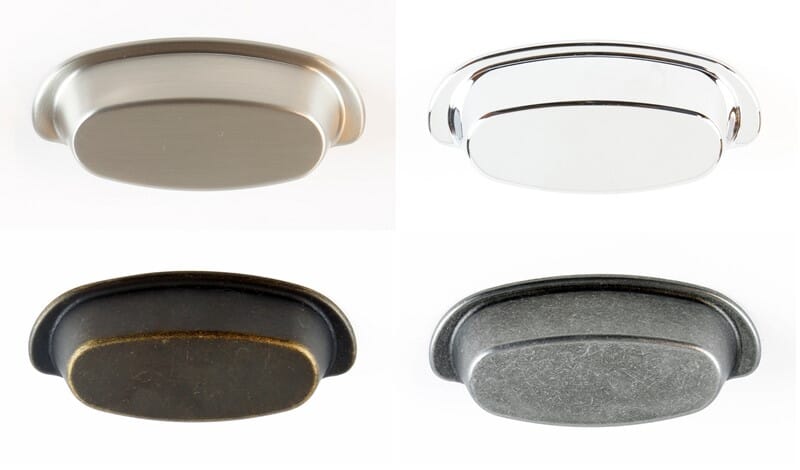 Skålhåndtak i zamak. Skålhåndtak som passer til innredninger som kjøkken, bad eller garderober. Dette skålhåndtaket finnes i forskjellige farger/overflater.