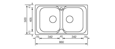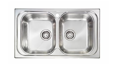 Satin-finish, innfelt kjøkkenvask med mål 86 x 50 cm. For basemål 800–900 mm, med forhåndsmontert tetning, hull 835 x 475 mm, kumdybde 170 mm og manual avløp.