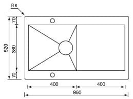 Stålvask med en kum og rillefelt.