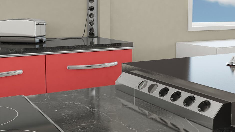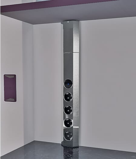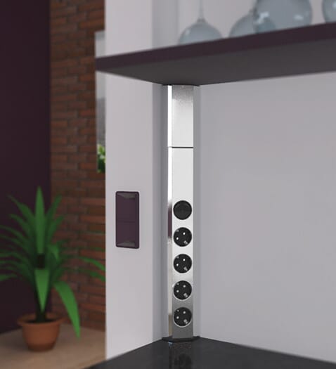 Lagerført med 4 jordede kontakter og av/på-bryter. Inkluderer 2 meter kabel og tilpasningsstykke. Mål: 458-580mm, kan monteres i hjørne, på vegg eller liggende.