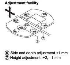 Sinklegerings-hengsel for tredimensjonal justering, perfekte for tresdører. Kan justeres sidelengs med 1 mm og i høyden med -1 til 2 mm. Åpningsvinkel 90°, for skruemontering.