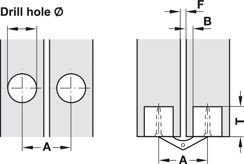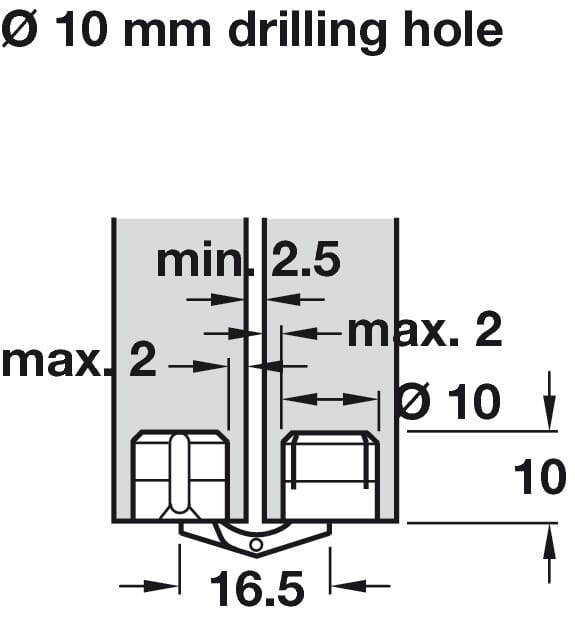 Zysa hengsel i messing for skjulte monteringer. Passer for treflater med tykkelse 14–40 mm, med åpningsvinkel på 180°. Monteres med skrue, med justerbar klemmeskru. Kan sikres med ekstra festing ved tung belastning.