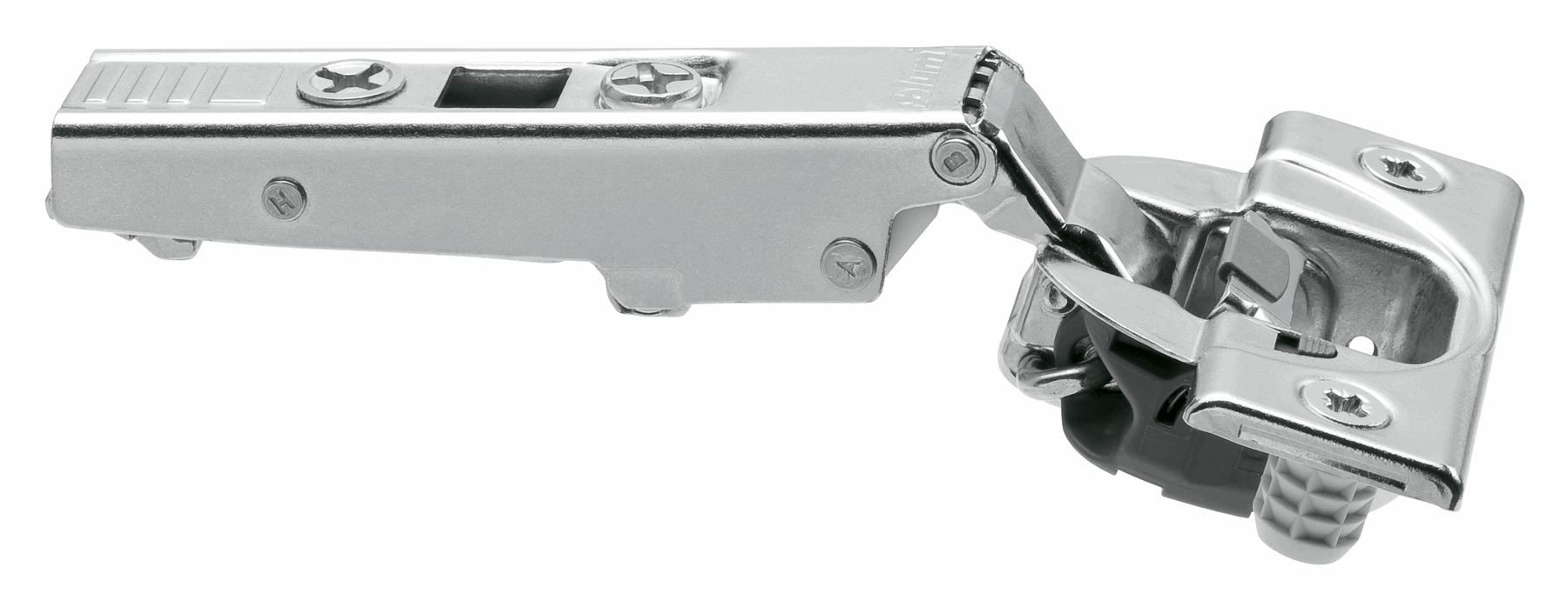 Blum 110 grader utenpåliggende Cliptop demper , integrert demping. Hengslet monteres med dübel.