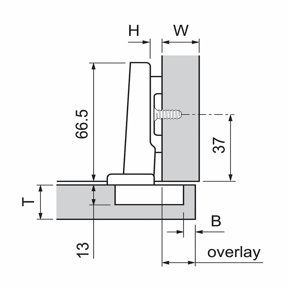 Hengsel fra Blum 110 grader utenpåliggende cliptop demper. Hengslet monters verktøyløst med Inserta. Trinnløs 3-dimmensjonal justering, passer alle Clip monteringsplater.