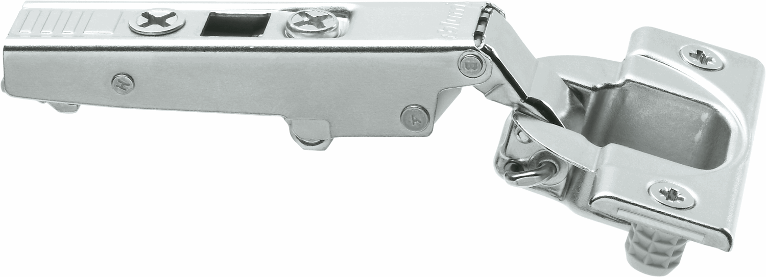 Clip top standard hengsel utenpåliggende med en åpningsvinkel på 110°. Hengselet har en nikkelbelagt stål konstruksjon og pressinn festing.