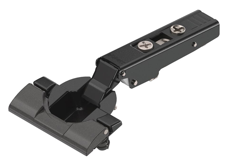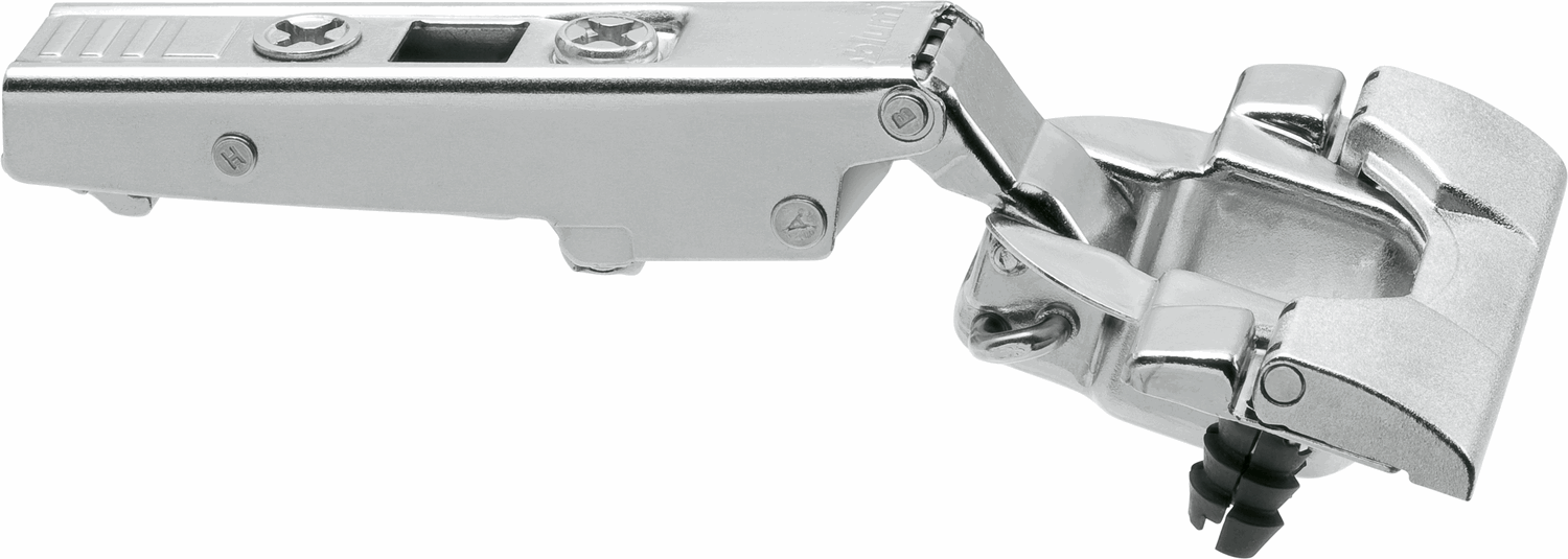 Cliptop standard hengsel for utenpåliggende med en åpningsvinkel på 110°. Hengselet er usprunget og tillater Tip-on, med Inserta.