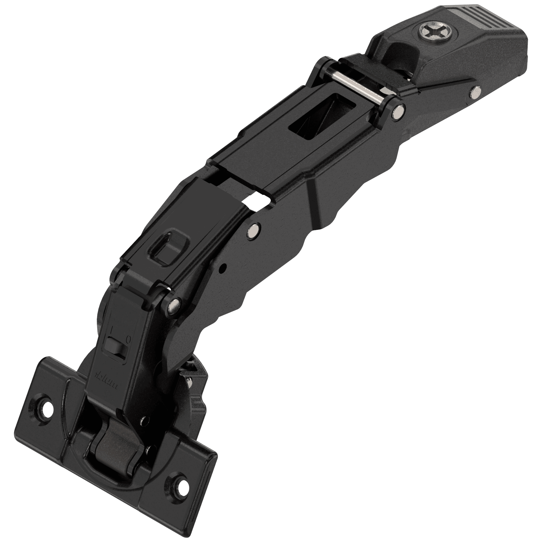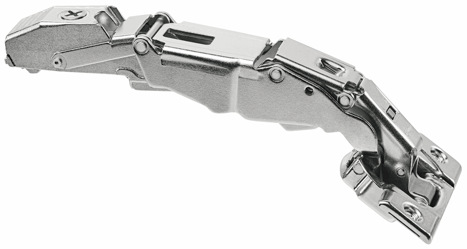 Blum 125 grader utenpåliggende hengsel Cliptop demper, integrert demper. Hengslet monteres med skruer.