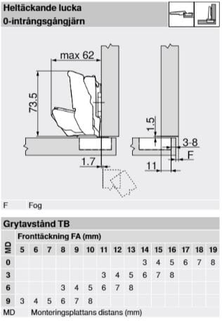 - Dybdejustering: +3/-2 mm