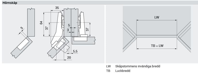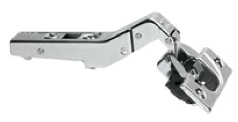 Cliptop demper vinklet hengsel for halvdekkende med en åpningsvinkel på 95°. Hengselet har en nikkelbelagt stål konstruksjon og skrue-innfesting med integrert demper.