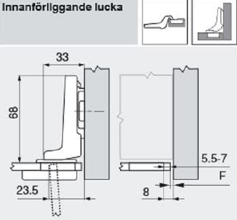 - Kollisjonsmåling (hengselarm høyde): 31 mm