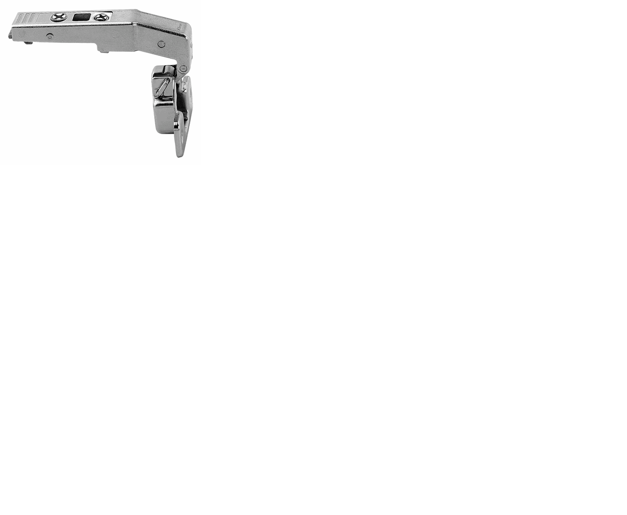 Cliptop blindhjørne hengsel for innenforliggende applikasjoner med en åpningsvinkel på 95°. Hengselet har en nikkelbelagt stål konstruksjon og skrue-innfesting.