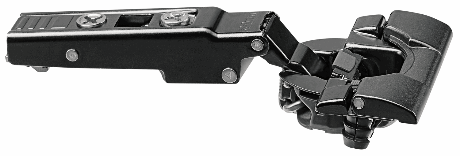 Cliptop demper standard hengsel for utenpåliggende applikasjoner med en åpning på 110°. Hengselet har en robust, nikkelbelagt stål konstruksjon med verktøyfri festing med inserta og integrert demper.