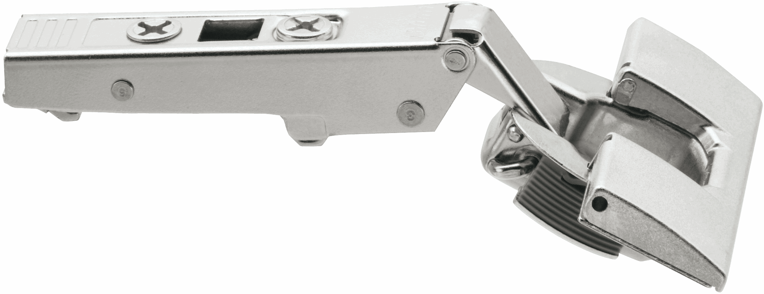 Cliptop hengsel for utenpåliggende applikasjoner med en åpning på 120°. Hengselet har en robust, nikkelbelagt stål konstruksjon med inserta.