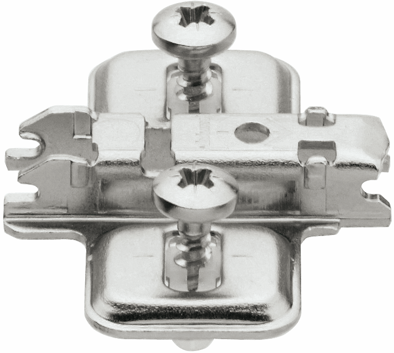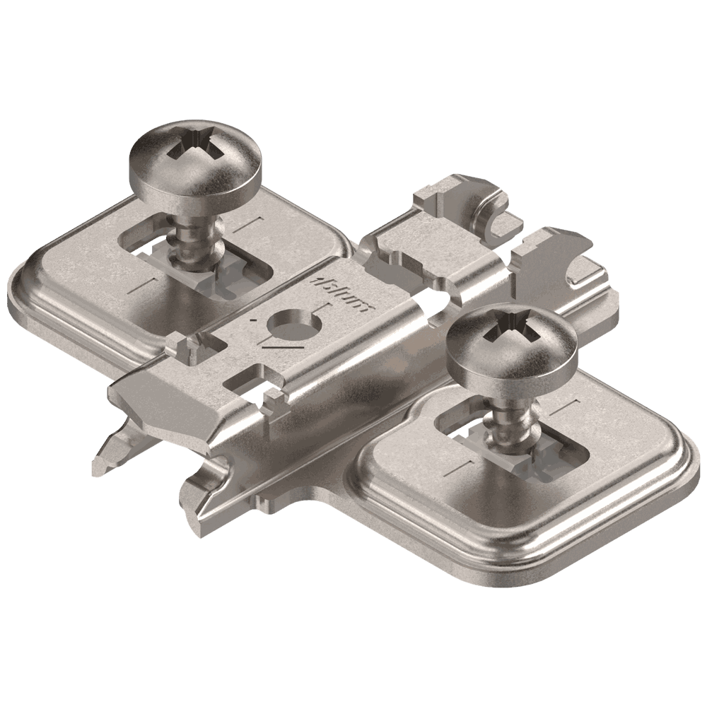Denne kryssformede monteringsplaten i stål er for bruk med dübel splittplugger. Den har en 0 mm festeavstand og er egnet for tosidig montering, med utstyr for justering ved hjelp av utelengt hull.