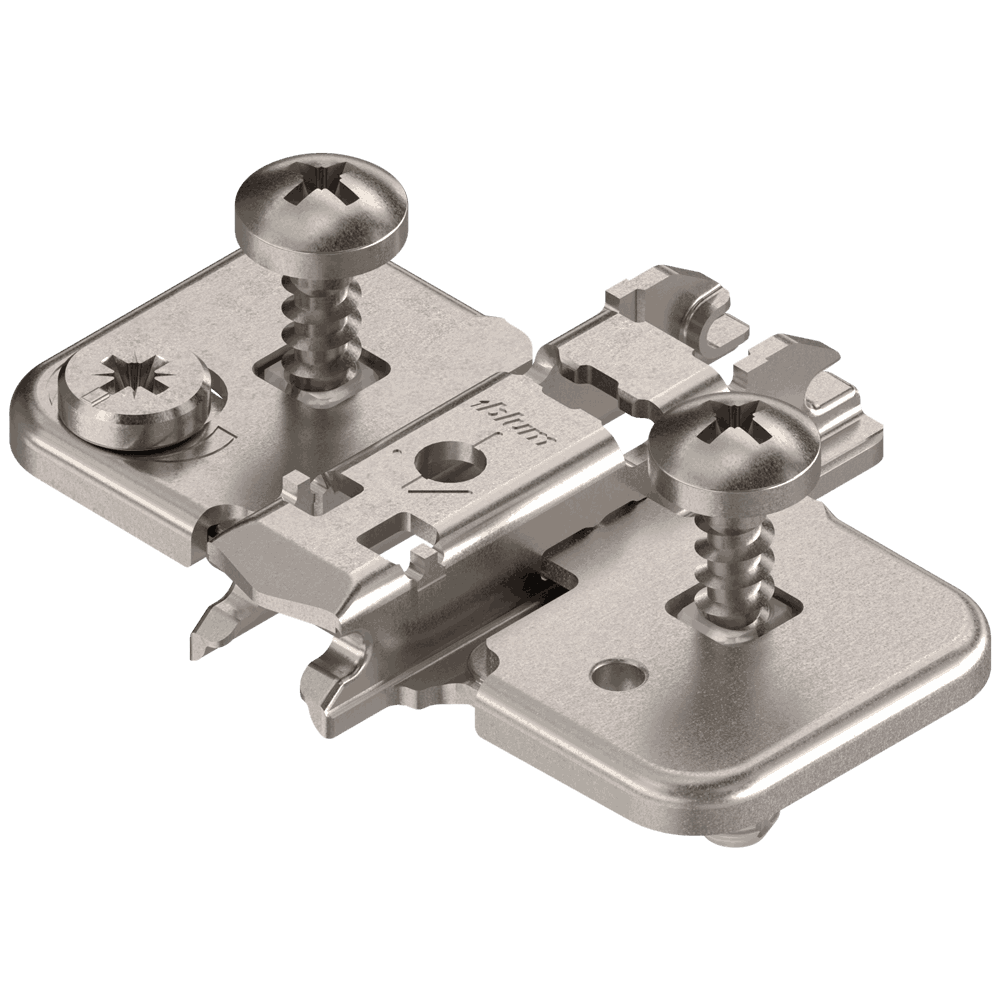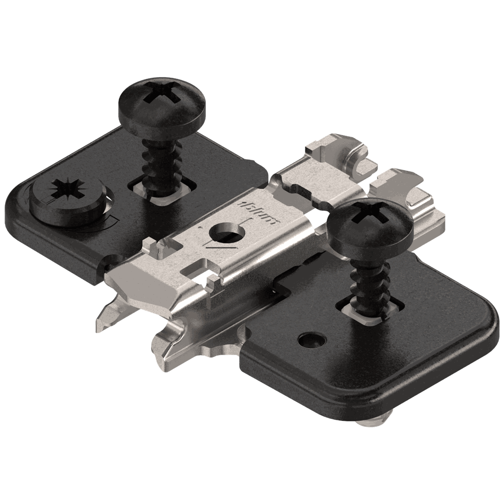Monteringsplate fra Blum H0 37 mm med dübel (skruer inkl.) og exenter høydejustering.