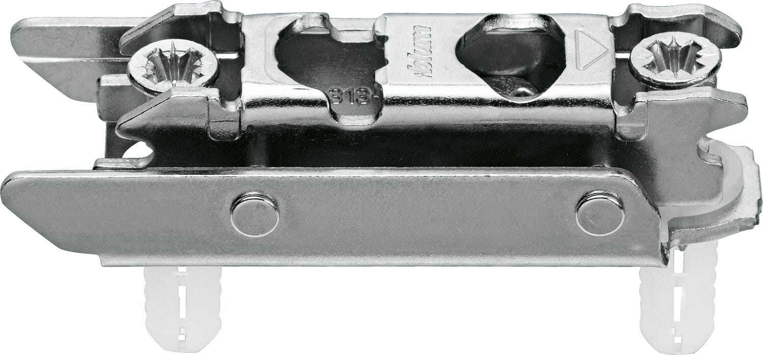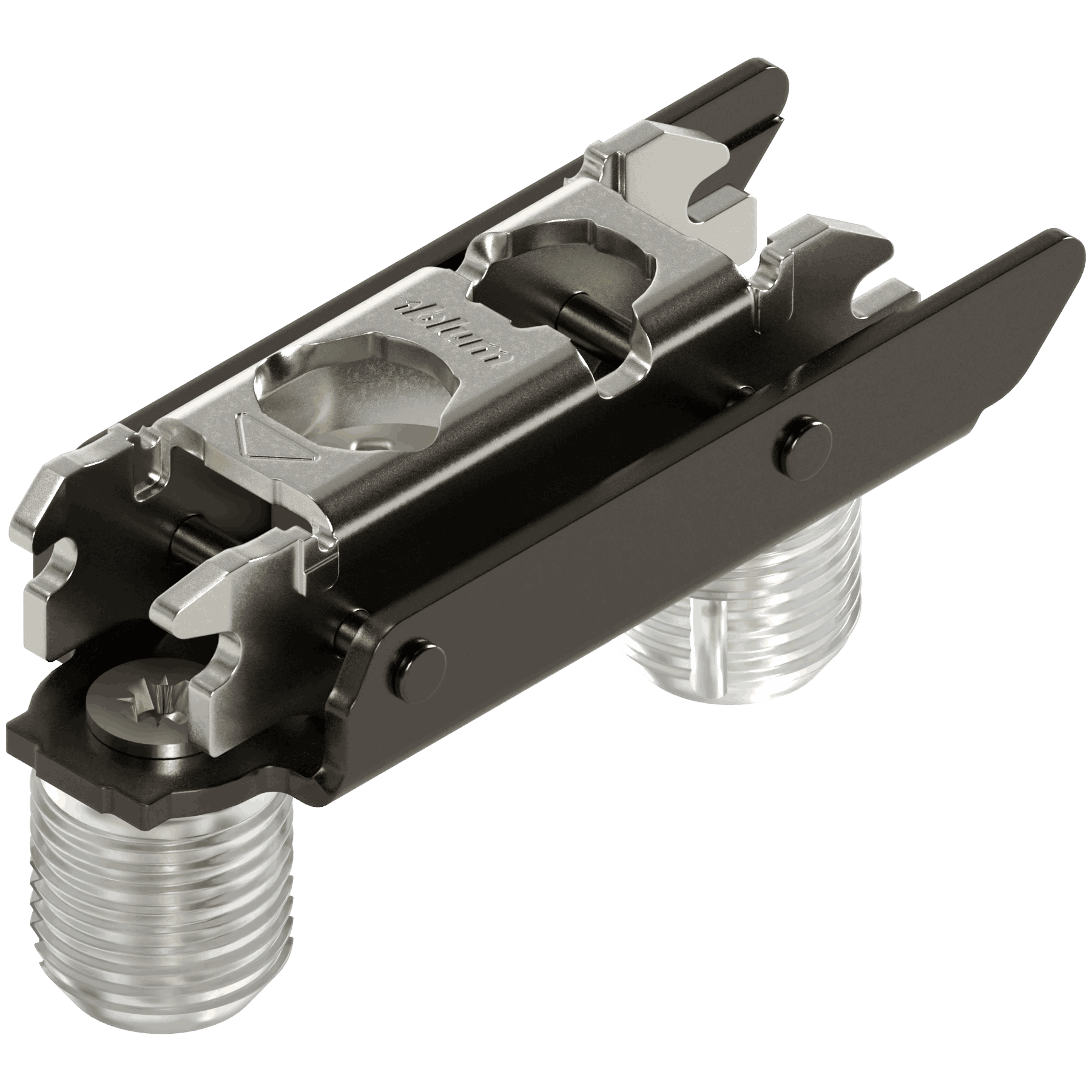 Horisontal monteringsplate fra Blum H3 20 mm med dübel (skruer inkl.) og exenterskrue for høydejustering i Svart Onyx.