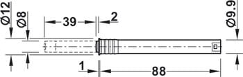Push catch for tyngre fronter av tre eller med aluminiumsramme. Modell: Type 3, utkastkraft 26-48 N, for hull Ø10 mm, kan monteres i hull eller skli inn i adapter.