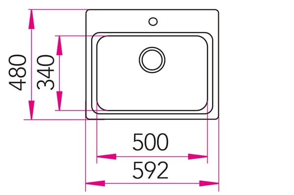 Størrelse 592x480mm., Kumdybde 180mm, Rustfritt Stål.