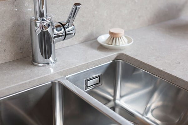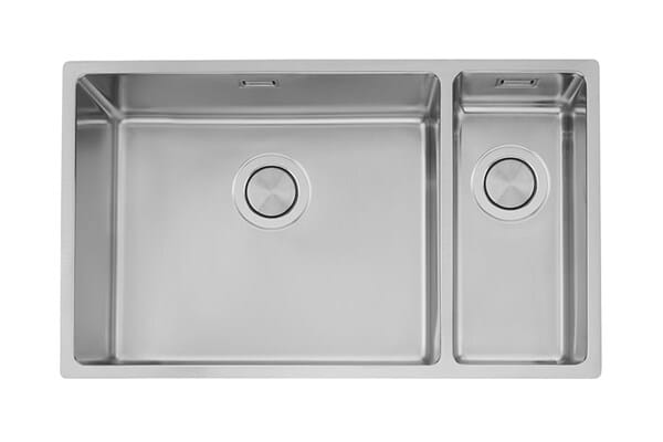 LAGOM-50-18 er en praktisk kjøkkenvask med en stor og en liten kum, designet for 80 cm skap. Den mindre kummen er ideell for å helle ut kokevann, mens den store vasken ligger på venstre side. Vasken kan monteres underlimt, planlimt eller nedfelt.