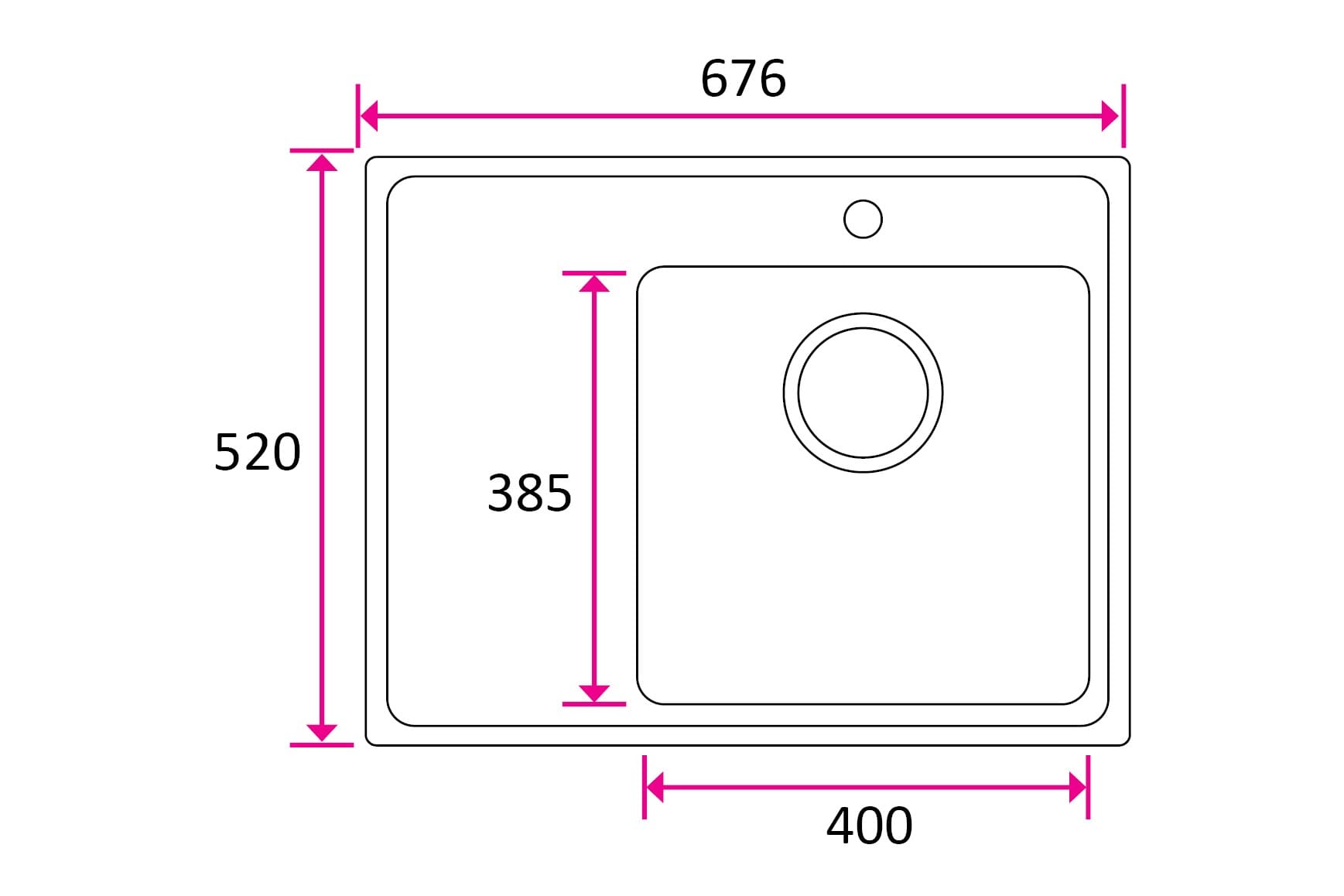 Størrelse: 676x520mm, Kumdybde 190mm, Rustfritt Stål.