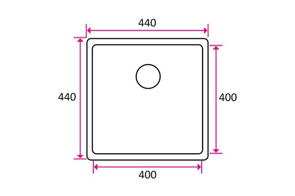 Størrelse: 440x440mm, Kumdybde 248mm, Rustfritt Stål.