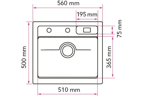Størrelse 560x500mm, Kumdybde 180mm, Rustfritt Stål.