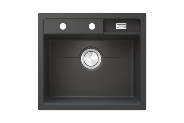 Combo CEG51-57GF er en praktisk og stilren sort komposittvask laget av slitesterkt kvartsbasert materiale, som tåler slitasje og varme. Vasken består av en stor kum og en ekstra liten kum.