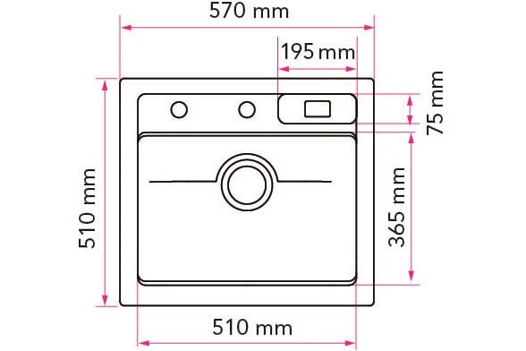 Størrelse 570x510mm, Kumdybde 180mm, Rustfritt Stål.