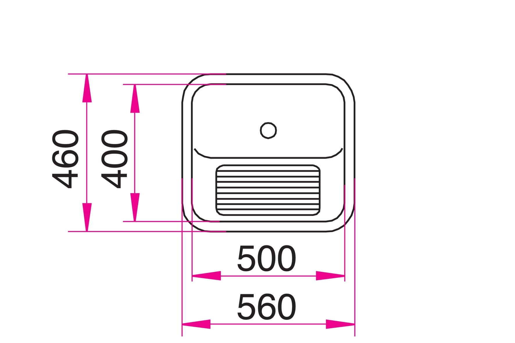 Størrelse 560x460mm, Kumdybde 230mm, Rustfritt Stål.