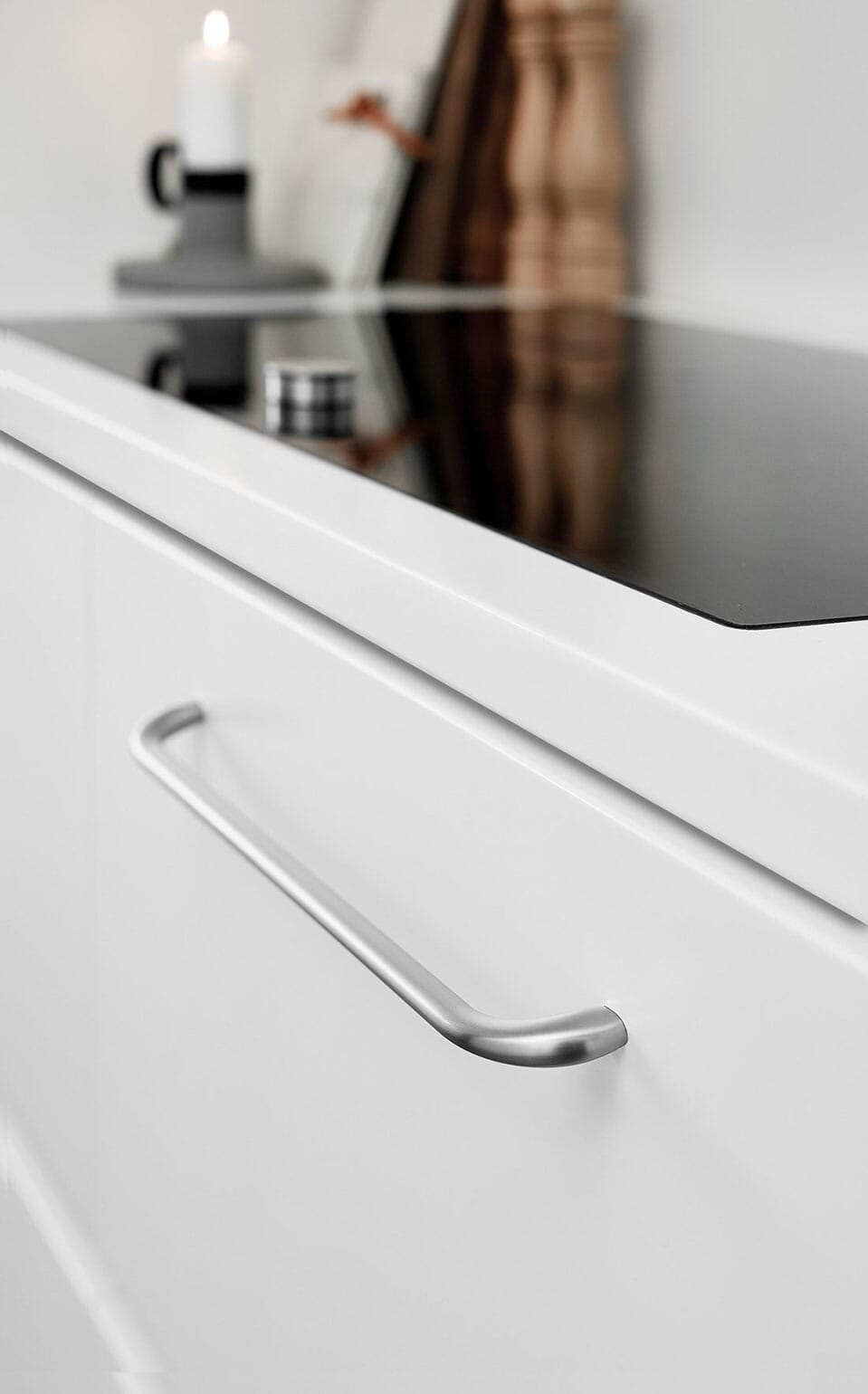 Matt møbelhåndtak i nikkel som passer til innredninger som kjøkken, bad eller garderobe.