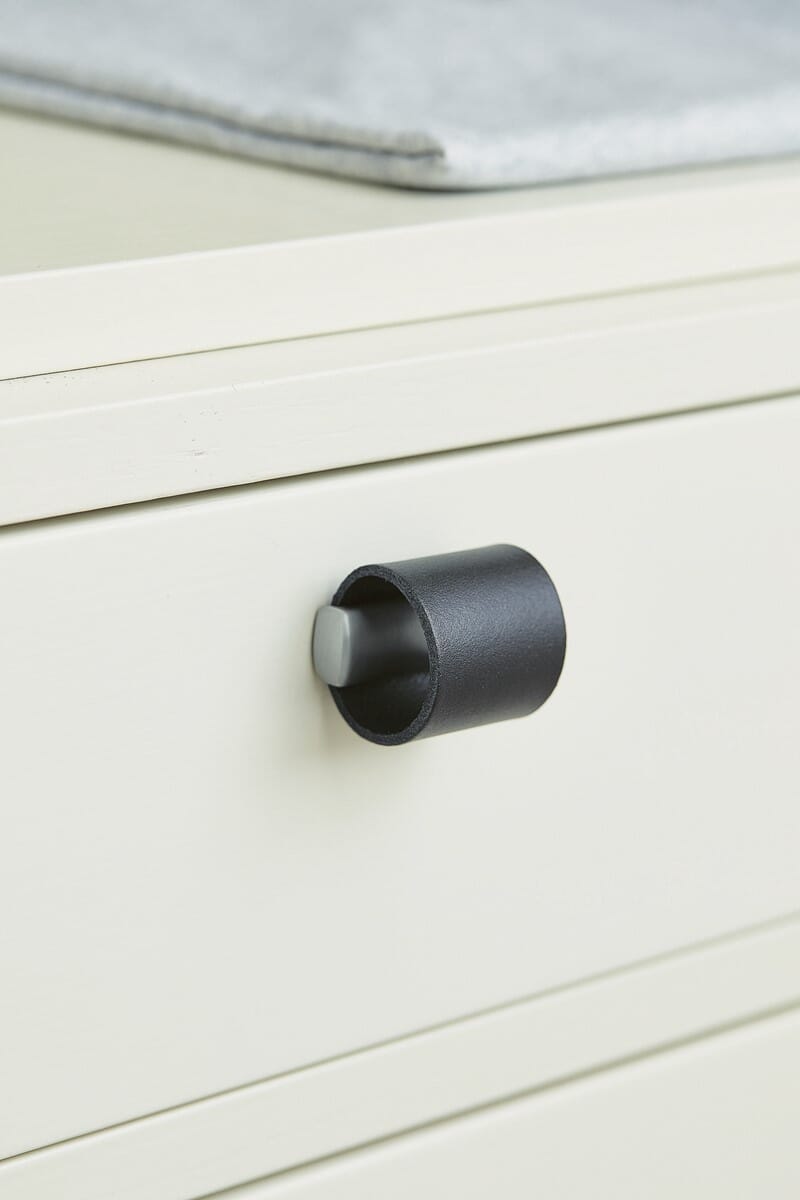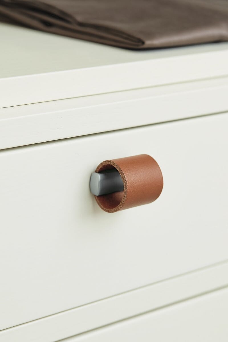 Et flott møbelhåndtak i lær som passer til innredninger som kjøkken, bad eller garderobe.