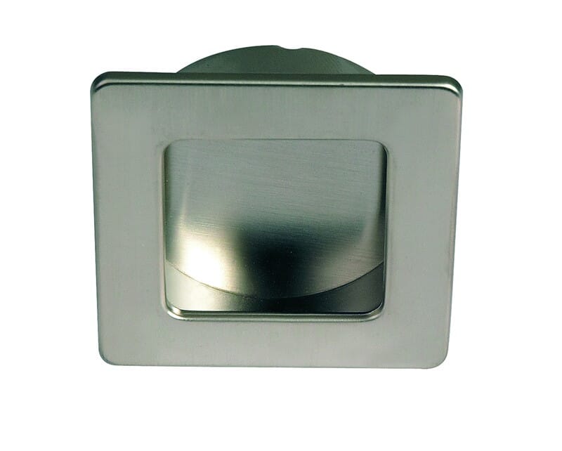 Innfresningsgrep i zamak. Dette innfresningsgrepet finnes i størrelse 50x50mm i fargen matt nikkel. Utfresingsmål Ø45mm. 11mm dypt spor.