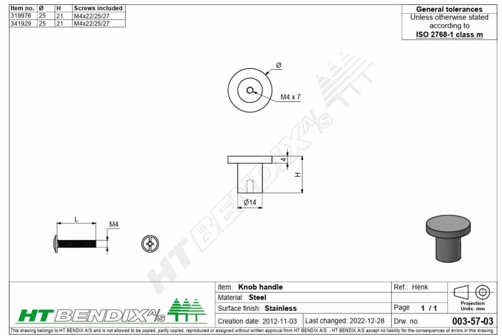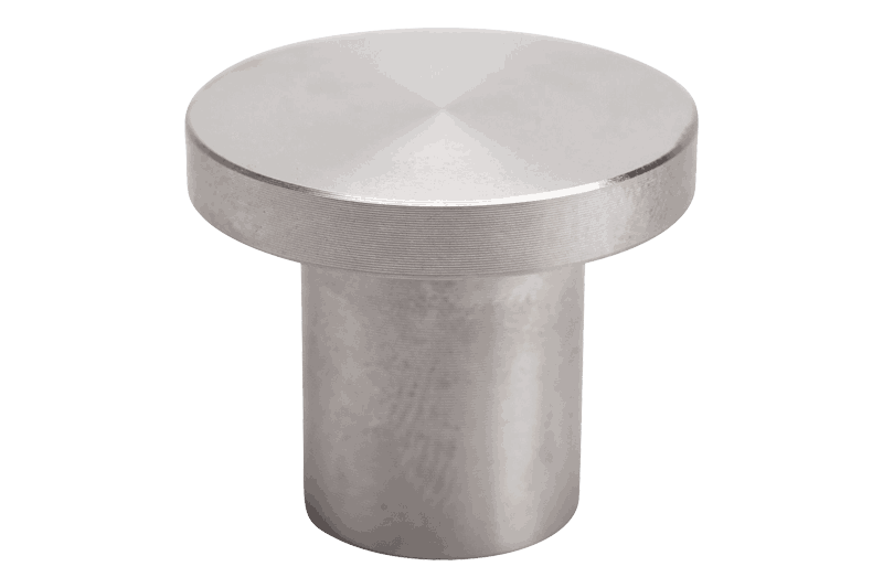 Knott i Børstet stål med diameter Ø25 mm og Ø14 mm, totalt 21 mm høyt. Perfekt for skap, skuffer og interiørdetaljer.
