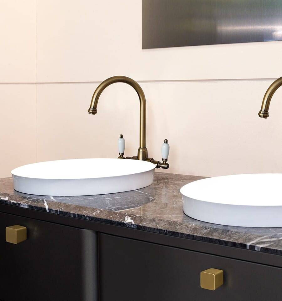 En flott møbelknott i børstet messing som passer til innredninger som kjøkken, bad eller garderobe.