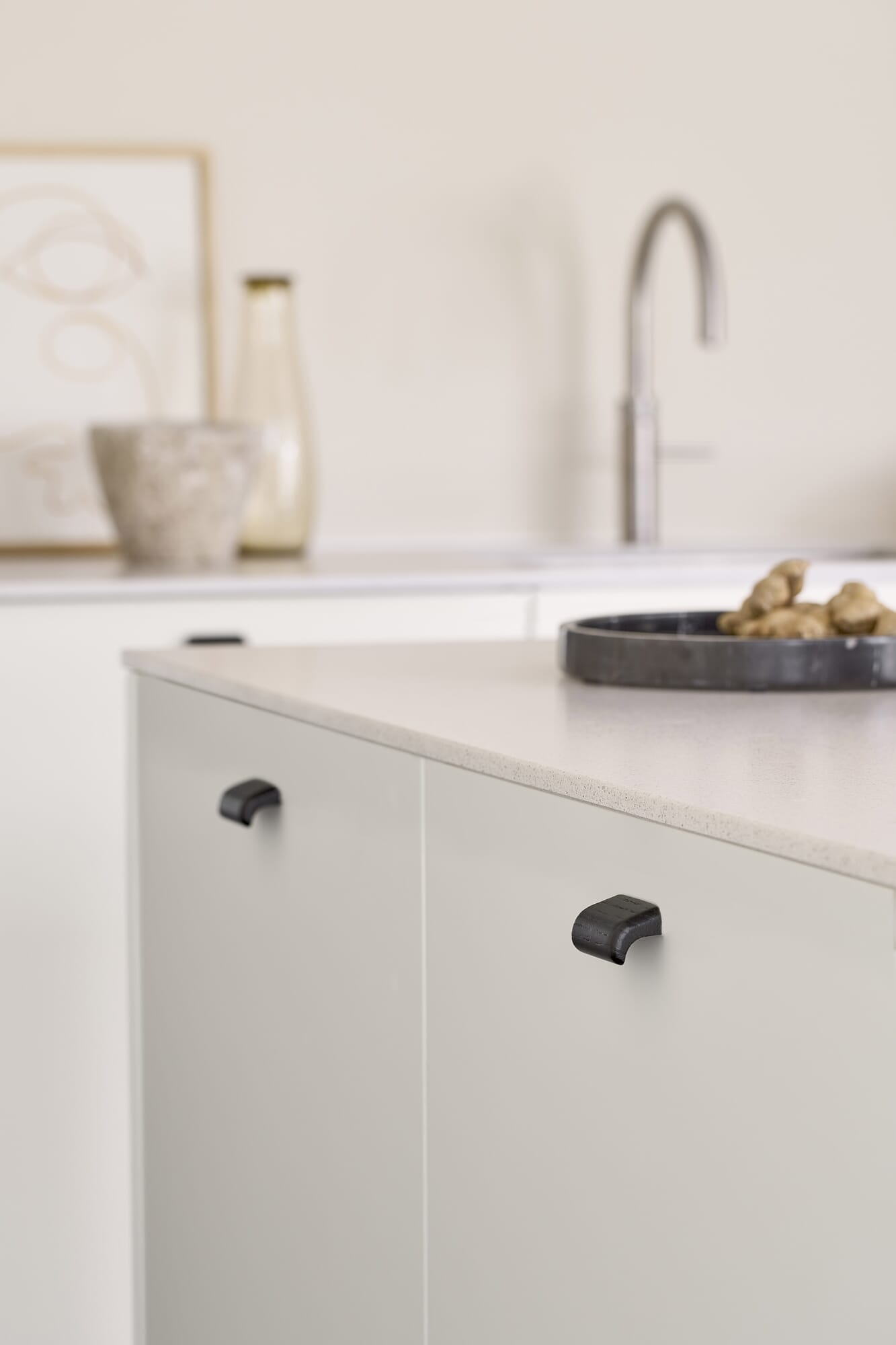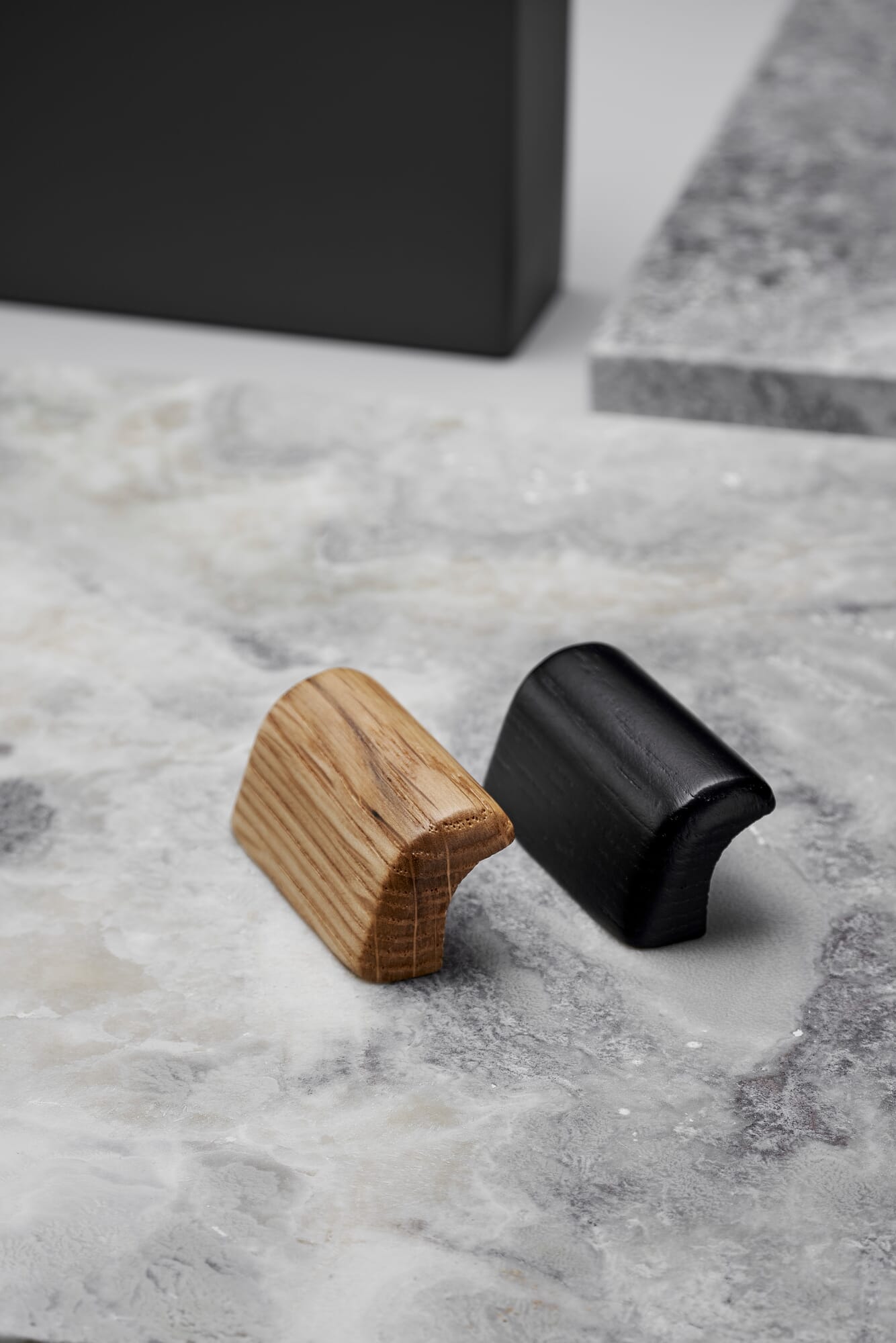 Knott 1031 fra Furnipart i serien Glove. Knotten av treverk passer til ulike innredninger både på baderommet, kjøkkenet og i garderoben.