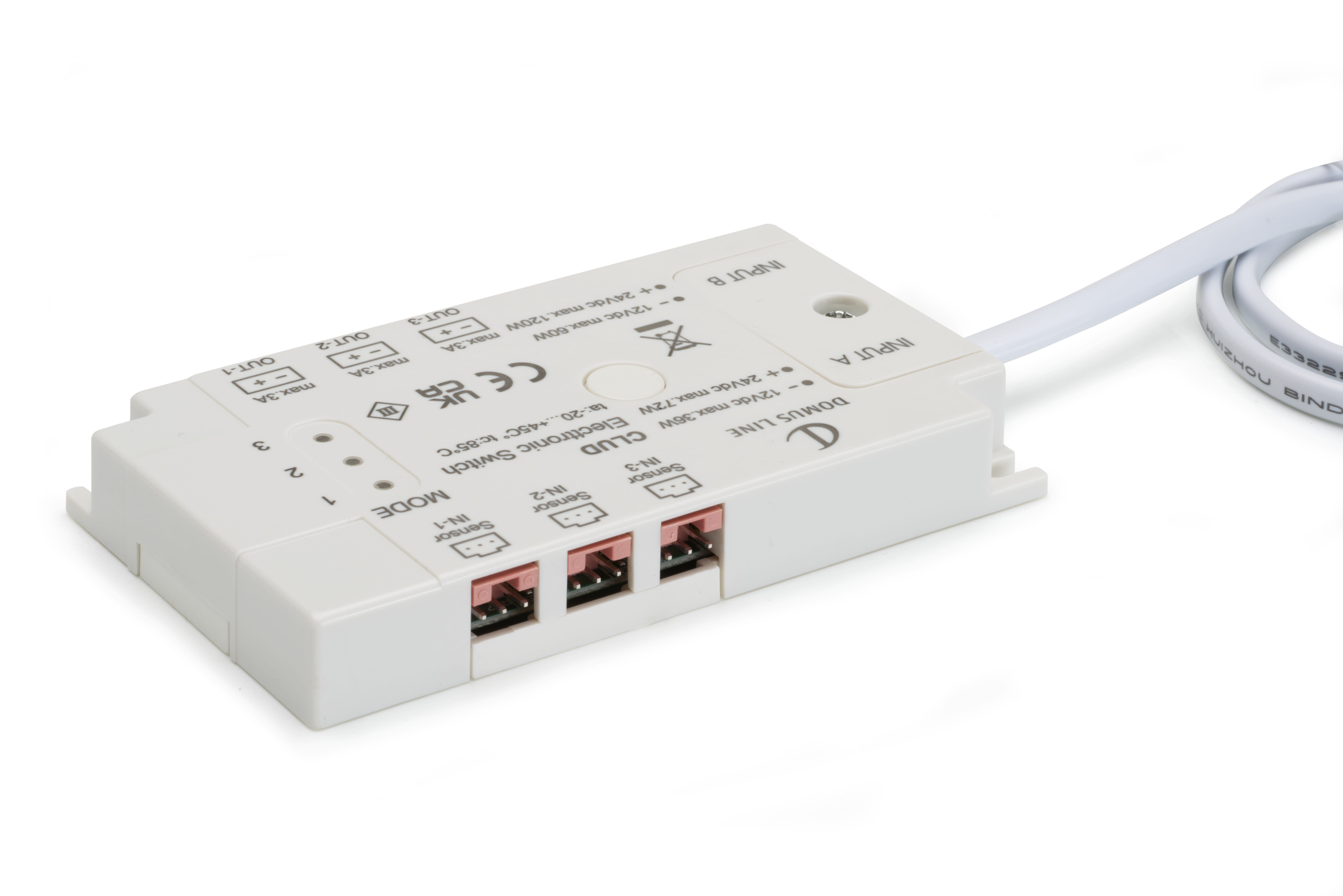 Fordeler sensor kontrollsystem for LED-lyskilder. Kobles mellom strømforsyning og lamper (12V/24V). kan drive opp til tre infrarøde sensorer bakdør. Koble til Micro24-systemet.