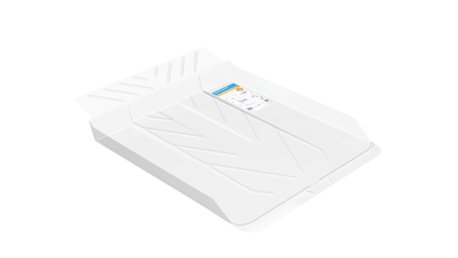 Robust oppvaskmaskinunderlegg i plast som oppdager lekkasjer. leder vann mot fronten og forhindrer vannskader. Enkel å installere.