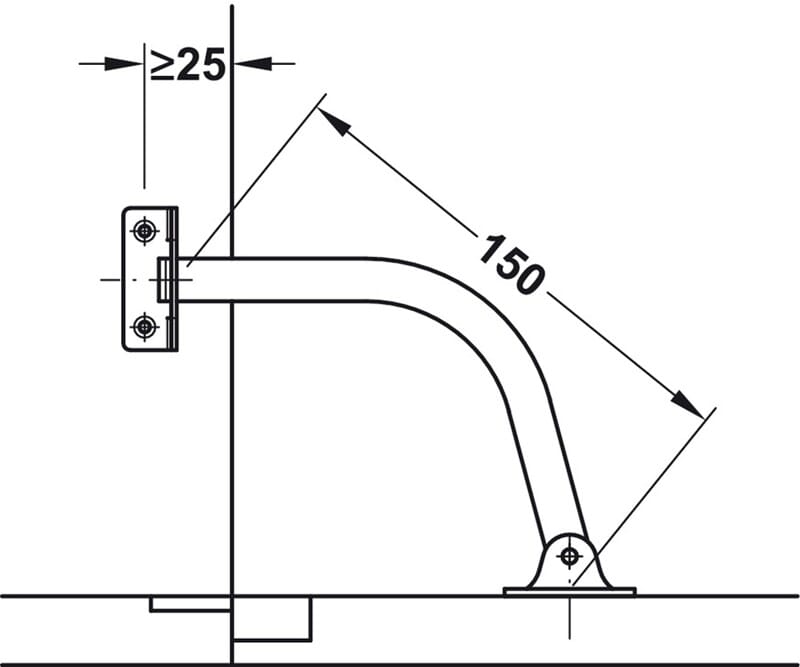 Klaffestøtte/åpningsbegrenser 150mm venstre