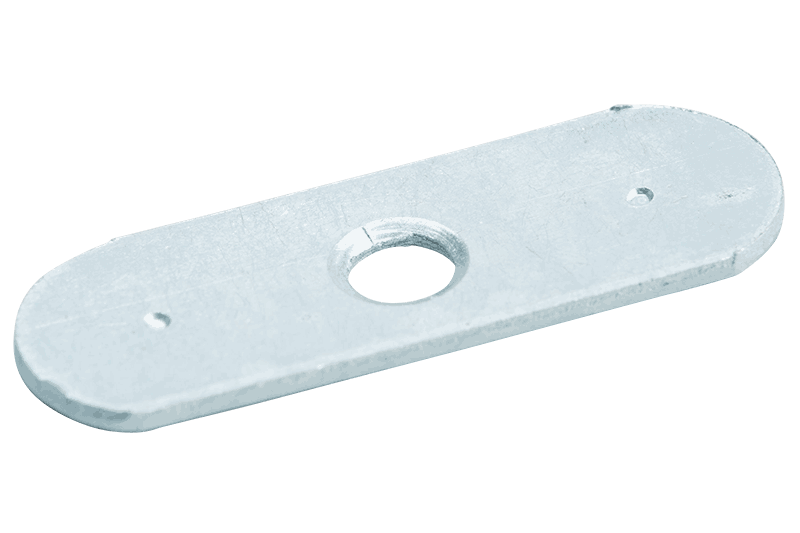 Langt låseblikk i stål. 35 mm lengde, 12 mm bredde, med 4,5 mm hull, elgalvanisert overflate.