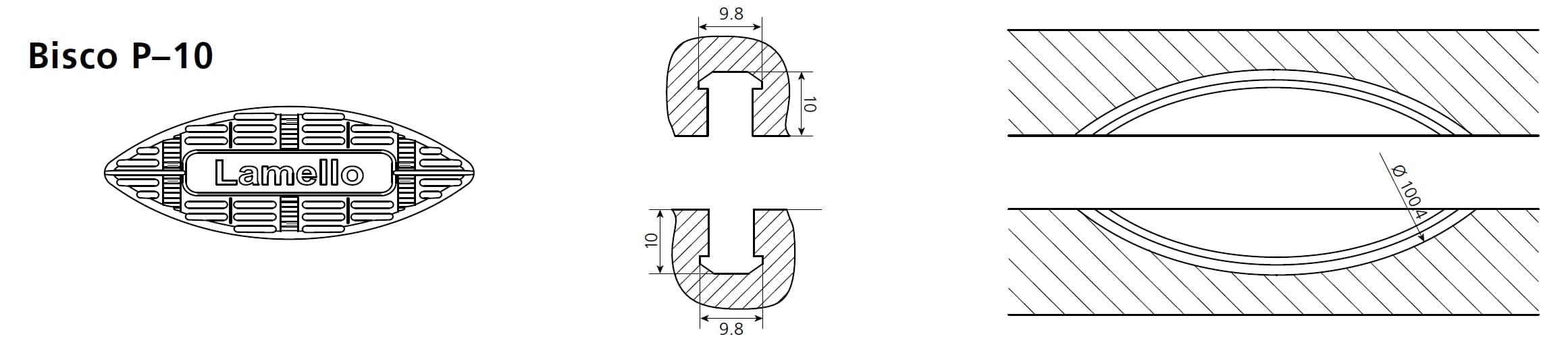 Lamello Bisco P for vinkel- og miterforbindelser (22,5° til 180°). Sikrer riktig posisjon og kontroll før liming, for materialer. Kommer i pakker med 80 stk.