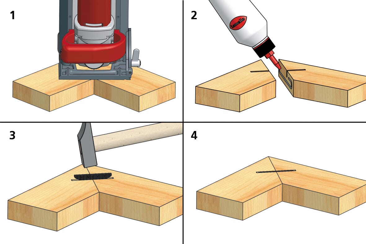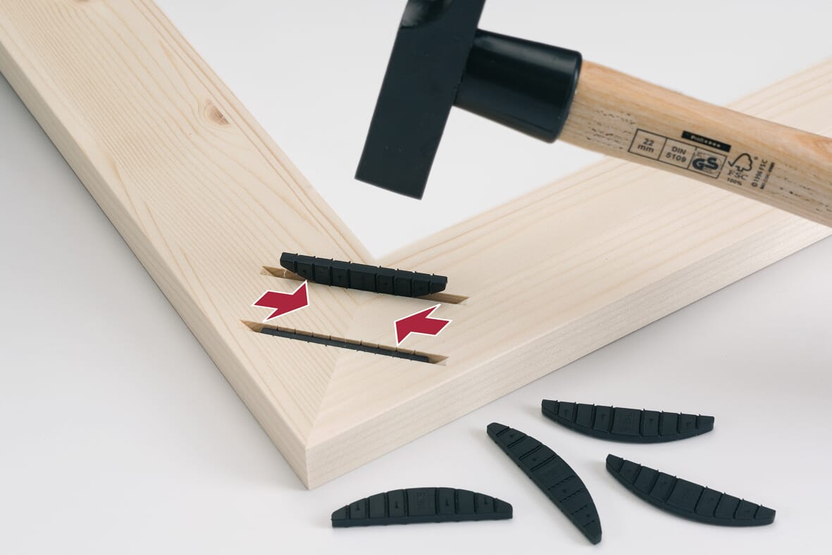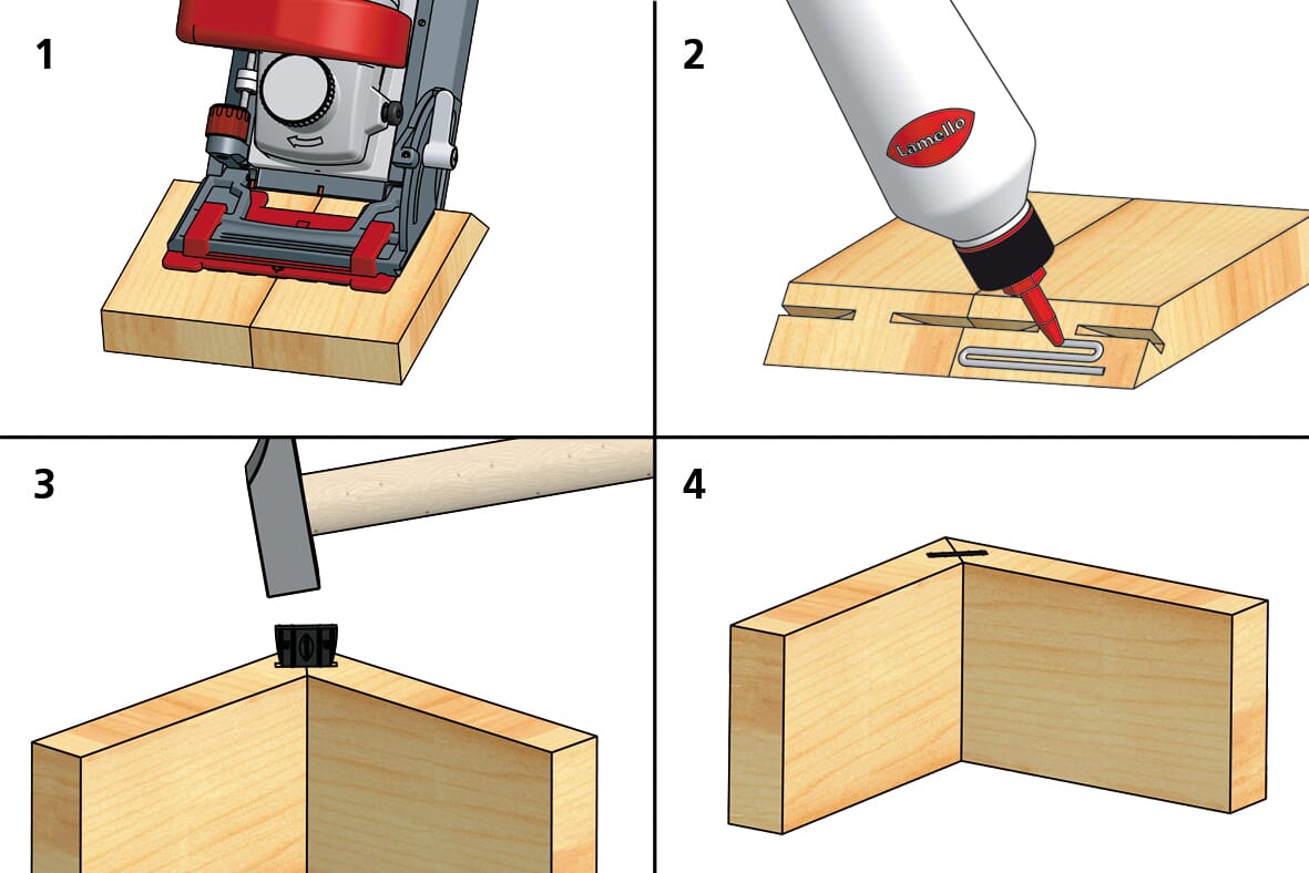 Lamello E20 er et selvklemmende element i størrelse 20 for liming. Den kobler og strammer leddet når den bankes inn i 4 mm-sporet. Finnes i to varianter for overflate- og kantforbindelser. Ideell for bilderammer, sokkelforlengelser og forbindelser på byggeplassen.