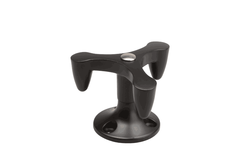 Dreibar krok i zamak. diameter 36,5 mm og høyde 43 mm, med slitesterk, malt matt sort.
