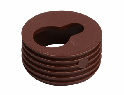Brun plast oppheng med diameter 20 mm og høyde 10 mm. utstyrt med nøkkelhull for enkel montering. Passer for speil og dekorative gjenstander.