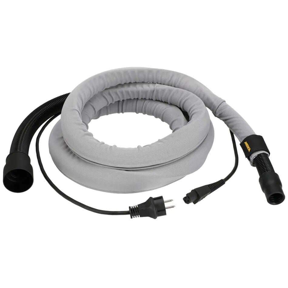 Dette forhåndsforstekte 4 meters settet inkluderer CE 230V kabel med beskyttelseshylse og en støvsugerslange. Hylsen beskytter kabelen mot riper, gjør håndtering enklere og sikrer god fleksibilitet i arbeidsområdet. Passer for bruk med Mirka® DEROS, DEOS og LEROS, og bør føres utenfor hylsen for å opprettholde optimal funksjon og beskyttelse.