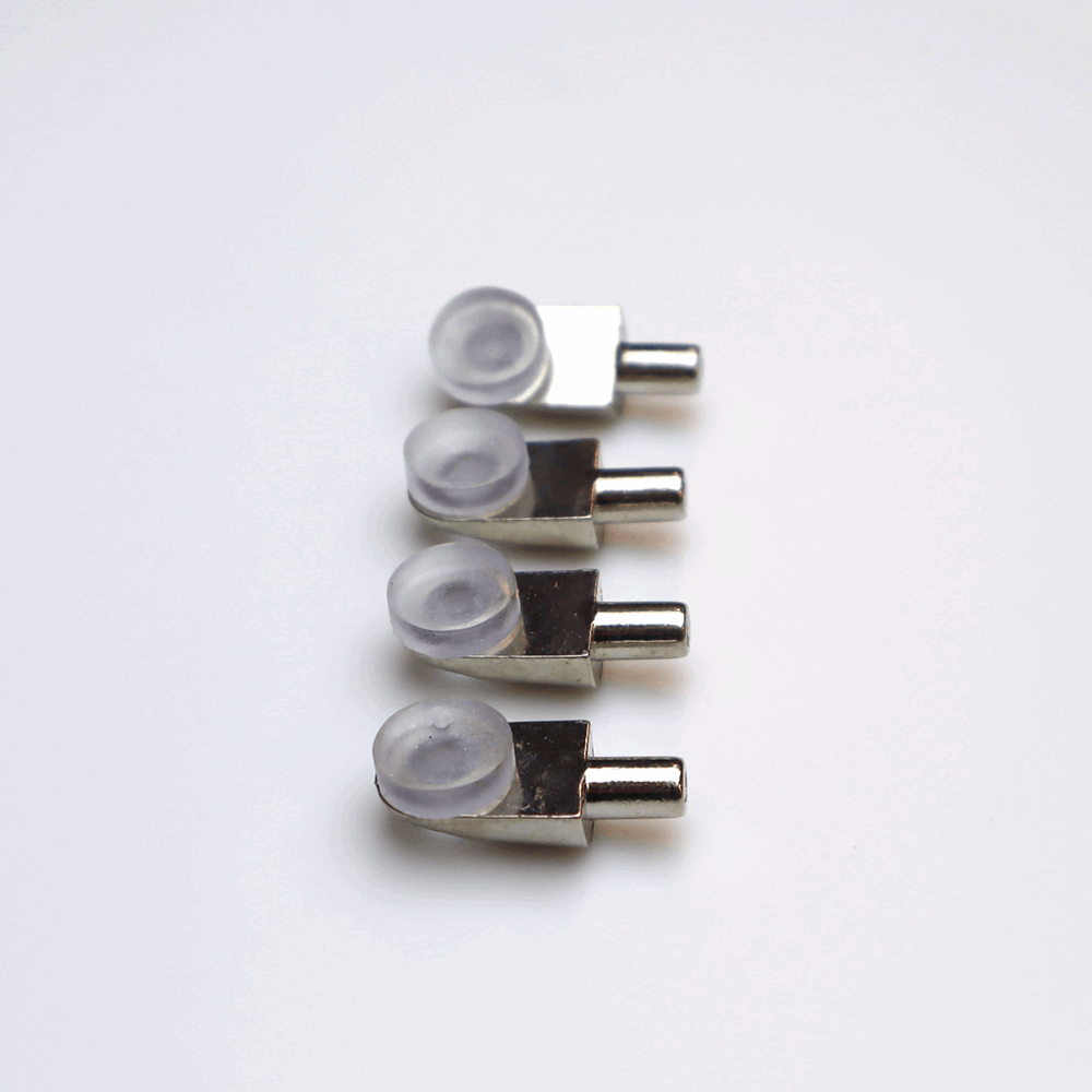 Sett med 4 støtter i stål med nikkelfinish. for stabil montering av hyller i møbler og skap. Enkle å installere og gir et elegant utseende.