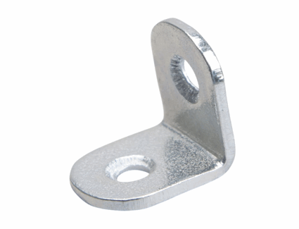 Robust vinkel i stål. 20 mm lang, 16 mm bred, 20 mm høy, med to hull Ø4,5 mm. Elgalvanisert overflate for slitestyrke og korrosjonsbeskyttelse.
