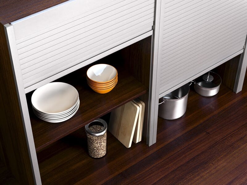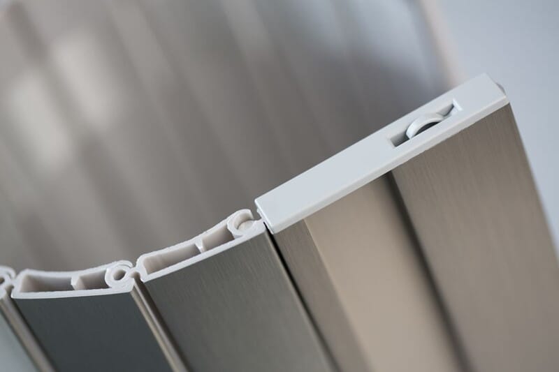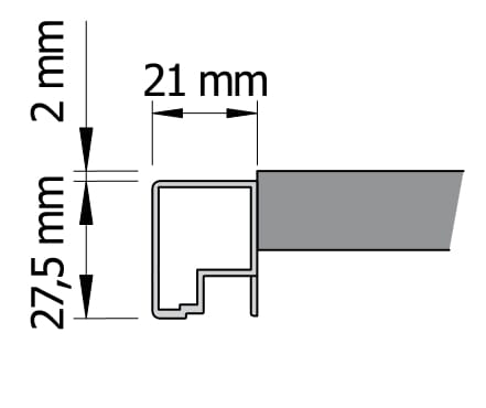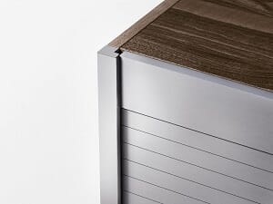Frontprofil og skinner i foliert ABS plast, børstet stål.