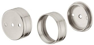 Feste monteres med skrue. har en diameter på 28 mm, og passer for rør med 25 mm diameter. Belagt med nikkel for en pen og holdbar overflate. Leveres i sett med 3 deler.
